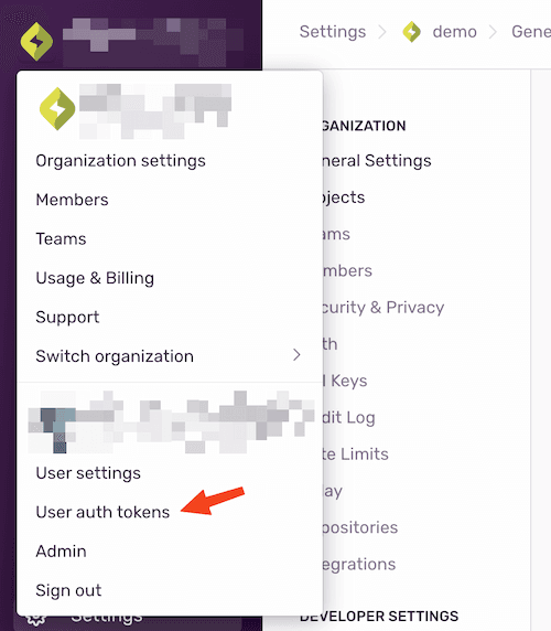 • User Auth Tokens: These tokens are bound to a user, and have access to all organizations and projects that user has access to.