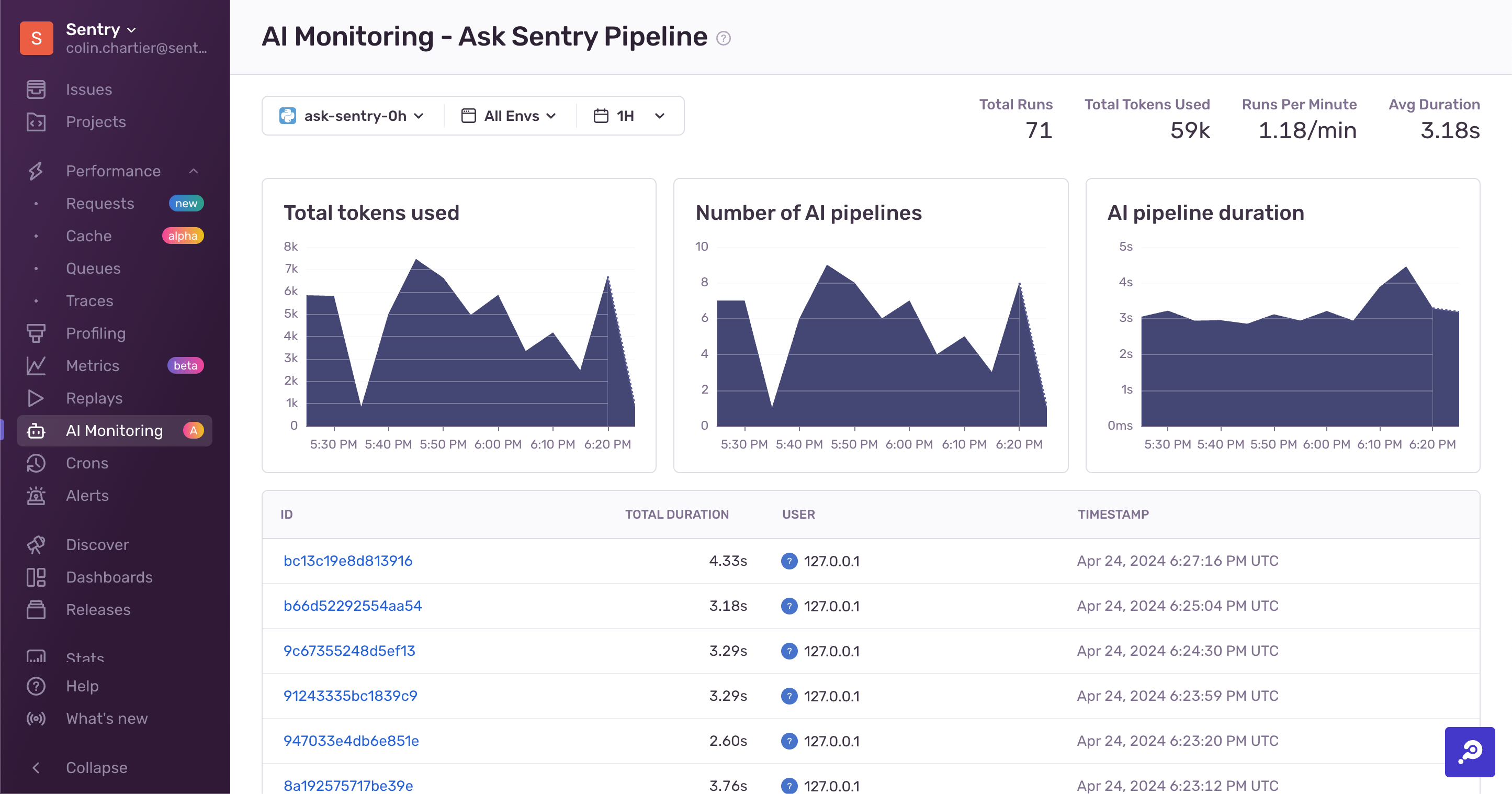 Sentry's LLM Monitoring tools help you understand what's going on with your AI pipelines. They automatically collect information about prompts, tokens, and models from providers like OpenAI and Anthropic.